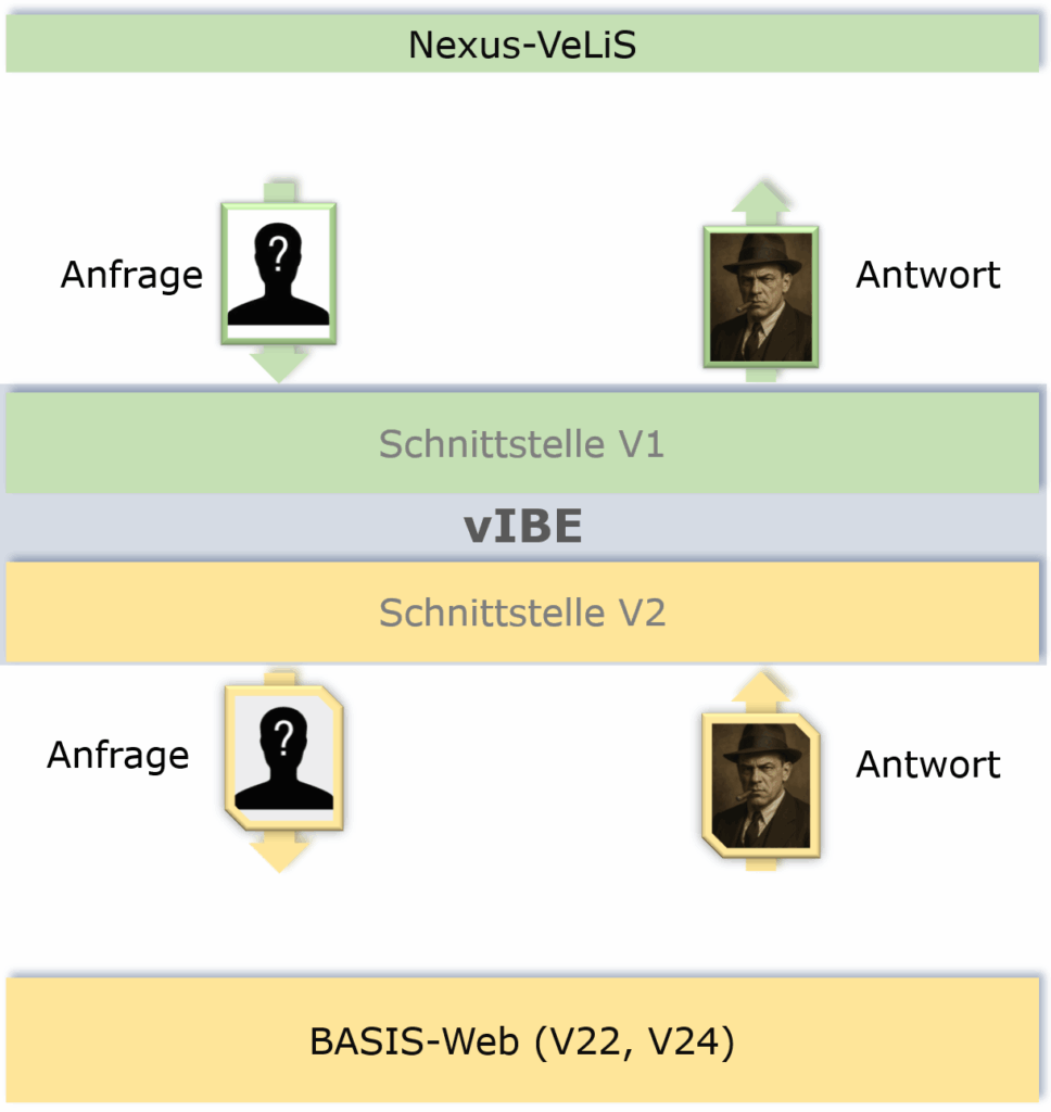 Als Vermittler liest viBE die aktuellen BASIS-Web-Daten über die neuen BASIS-Web Schnittstellen ein und stellt sie in der alten Form weiter zur Verfügung. Ein Weiterbetrieb älterer Software ist so ohne spezifische Anpassung möglich: